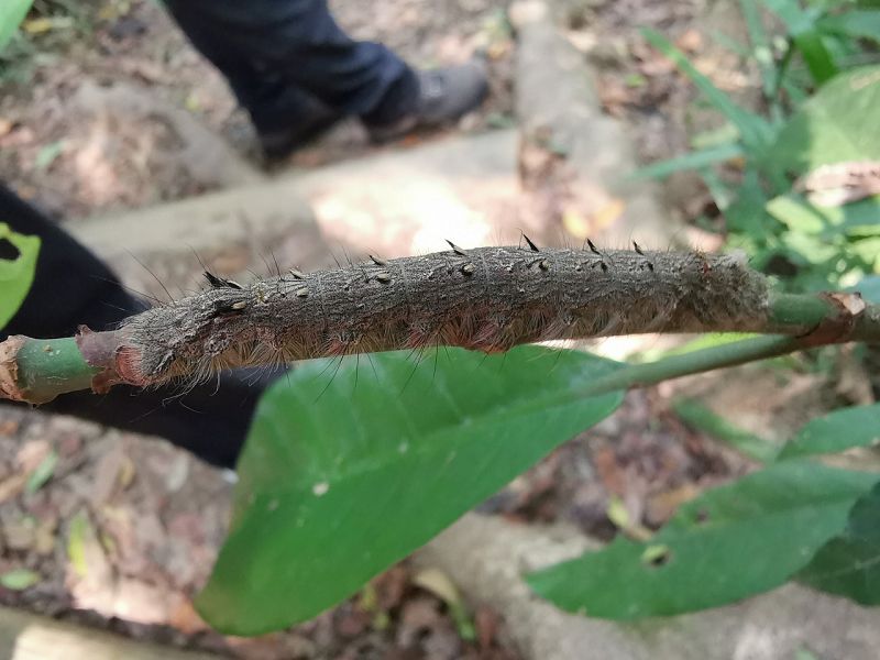 13. 大灰枯葉蛾:會癢的蛾有三類,枯葉蛾、毒蛾、刺蛾。趴在九節木葉柄上。
